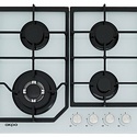 Поверхность: варочная панель • Тип поверхности: газовая • Число конфорок: 4 • Установка: независимая • Газовые конфорки: всего - 4 (1 конфорка "Тройная корона") • Газ-контроль конфорок: есть • Тип управления: механическое • Переключатели: поворотные • Электроподжиг: есть, автоматический • Размеры: 600x510 мм • Размер ниши для встраивания: 553x473 мм • Цвет: панель - черный, белый