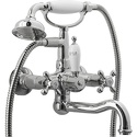 Назначение: ванна+душ • Конструкция: двухрычажный • Монтаж: вертикальный • Материал: покрытие - хром • Подводка: жесткая • Монтажные отверстия: 2 отверстия • Форма излива: традиционная • Душевая лейка в комплекте: есть • Держатель для душевой лейки: на смесителе
