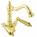 Назначение: для биде • Конструкция: двухрычажный • Монтаж: горизонтальный • Материал: латунь, покрытие - золото • Монтажные отверстия: 3 отверстия • Форма излива: традиционная • Душевая лейка в комплекте: нет • Донный клапан в комплекте: есть