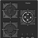 газовая на 3 конфорки • закаленное стекло • мощность: 5950 Вт • автоматический электроподжиг • газ-контроль • решетки: чугун • независимая установка • размеры (ШхГ): 45x52.5 см
