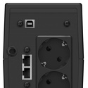 Интерактивный, 850 ВА / 480 Вт, количество выходных разъемов: 2 (2 с питанием от батареи), время работы: 1 мин, USB, защита локальной сети, защита телефонной линии