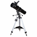 Экваториальный рефлектор Ньютона для изучения объектов дальнего космоса. Диаметр главного зеркала – 130 мм. Телескоп комплектуется двумя окулярами: 25 мм и 10 мм. Оптическая труба устанавливается на экваториальную монтировку EQ2. Монтировка снабжена механизмами тонких движений по обеим осям. Высоту алюминиевой треноги можно регулировать.