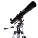 Ахроматический рефрактор с 80-миллиметровым объективом. На оптические поверхности нанесено многослойное просветляющее покрытие. Эта модель предназначена для изучения объектов Солнечной системы. Оптическая труба устанавливается на экваториальную монтировку EQ2 с механизмами тонких движений по обеим осям. Высота треноги регулируется.