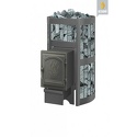 Пристенная банная печь, отапливаемый объем 6 куб.м, мощность 12 кВт, закрытого типа, древесное топливо, система "чистое стекло"