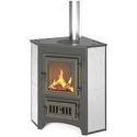 Пристенная печь-камин, отапливаемый объем 150 куб.м, мощность 9 кВт, с водяным контуром, закрытого типа, древесное топливо, система "чистое стекло", варочная панель